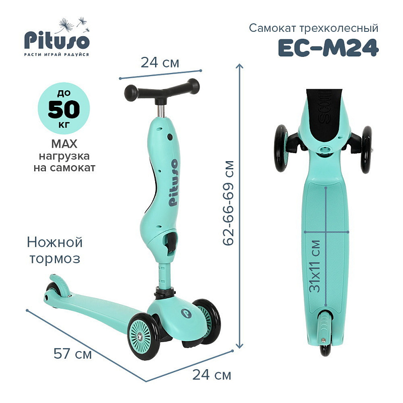 Трехколесный самокат Pituso EC-M24 2 в 1 Blue/Синий