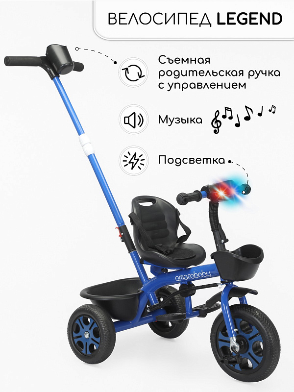Трехколесный велосипед AmaroBaby Legend с ручкой синий