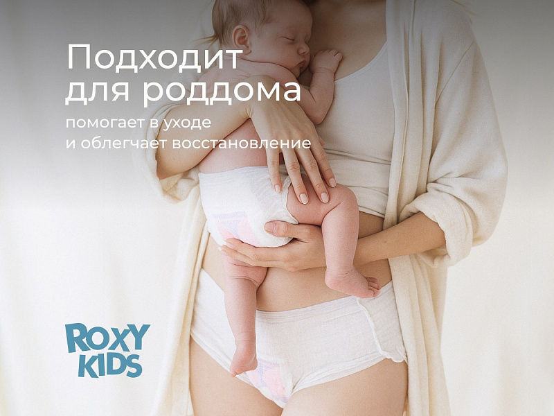 Гигиенические трусы ROXY-KIDS сочетают свойства одноразовых трусов для роддома и послеродовых прокладок. Изделие адаптируется под фигуру и остается незаметным под одеждой. Трусы легко надеваются и имеют утягивающий эффект. Хлопковая текстура позволит коже дышать, а тонкая ткань и мягкие швы будут ощущаться как хлопковое нижнее белье. Дизайн трусов повторяет анатомические особенности тела. Высокие бортики обеспечат защиту от протекания со всех сторон. Гигиеническая прокладка длиной 36 см впитывает до 400 мл влаги. Впитывающий слой из суперабсорбента и целлюлозной ваты моментально превращается в гель: это позволяет надежно удержать жидкость внутри прокладки и сохранить сухость и комфорт.