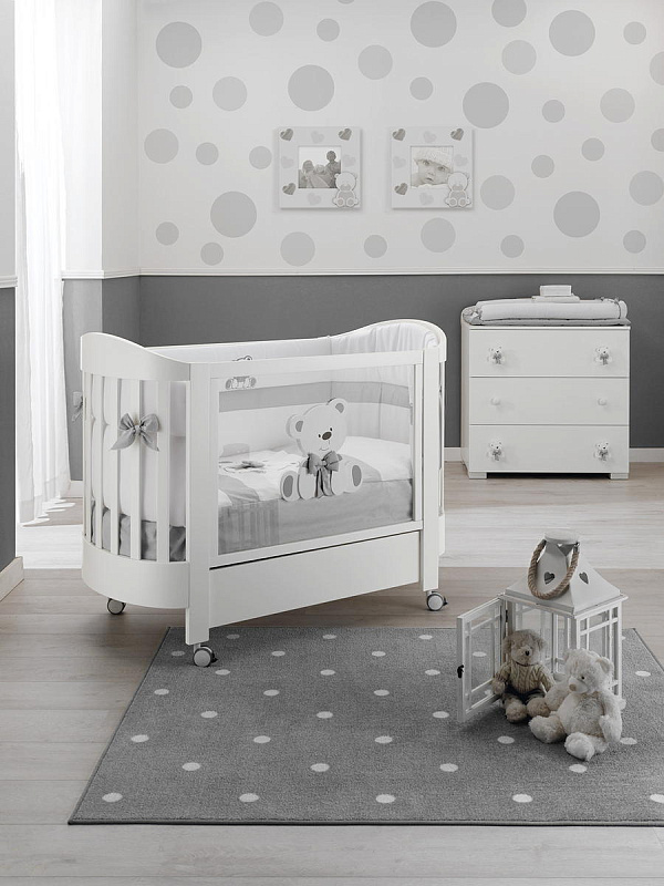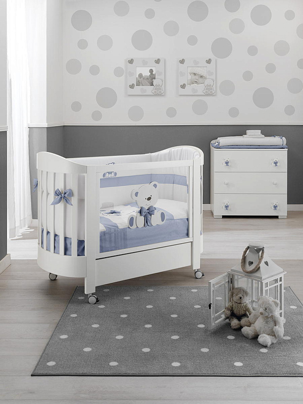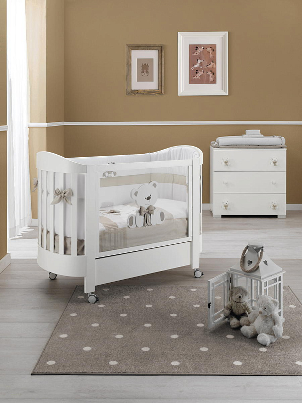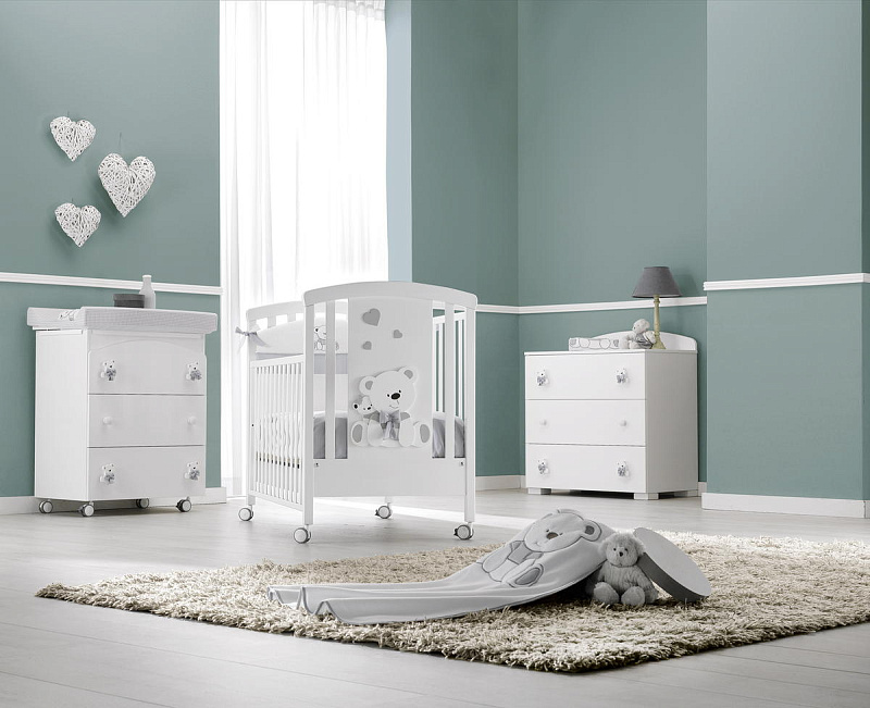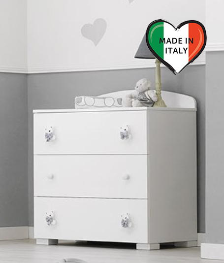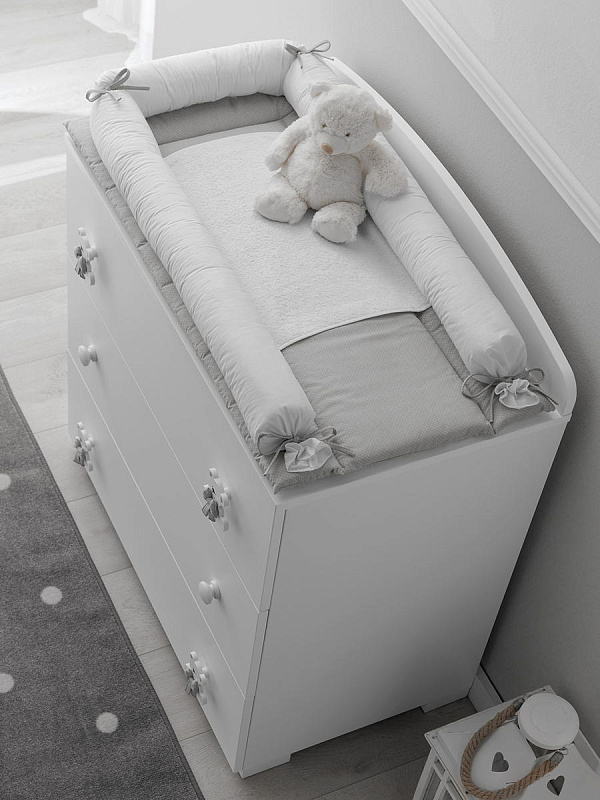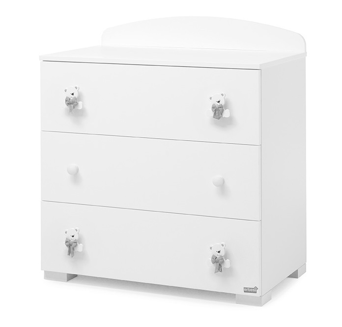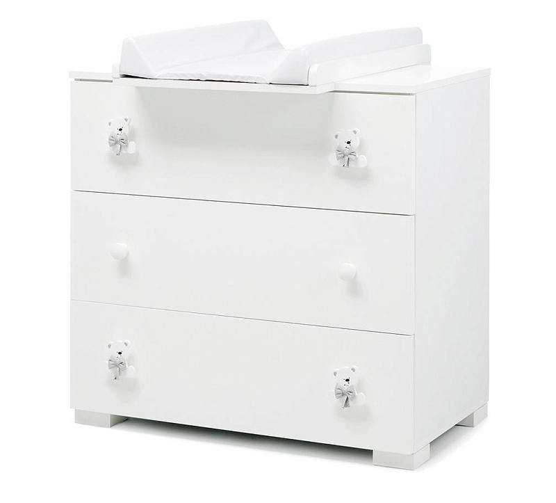Тумба-комод с пеленальным столом Erbesi Tato (Тато) представляет собой прекрасную мебель из эксклюзивной итальянской коллекции для детской комнаты. Она имеет прочный каркас, а ящики и фасады выполнены из панелей с нулевым уровнем формальдегидов, покрытых ПВХ материалом. Кроме того, тумба оснащена деревянными ручками и украшена аппликацией в виде медвежонка.