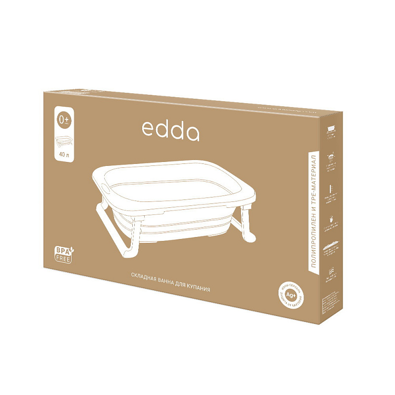 Складная ванночка edda создана для комфортного и спокойного купания малыша с первых дней жизни. Гипоаллергенная поверхность с ионами серебра обладает антибактериальными свойствами и препятствует размножению бактерий. Внутри предусмотрена прорезиненная вставка, которая снижает риск скольжения ребёнка во время купания.
