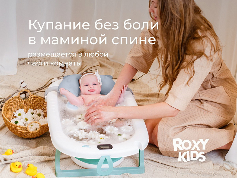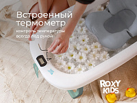 Детская складная ванночка для новорожденных с анатомическим матрасиком от ROXY-KIDS обеспечит комфортное купание с первых дней жизни. Ванночка оснащена мягким анатомическим матрасиком, который легко крепится к бортикам с помощью трех регулируемых ремней и гарантирует надежную фиксацию и комфорт для вашего малыша. Встроенный термометр позволяет легко контролировать температуру воды, а отверстие для душевой лейки облегчает процесс наполнения ванночки. Герметичная пробка обеспечивает легкость и удобство при сливе воды. Ванночка компактно складывается и оснащена петлей для крючка, поэтому не занимает много места при хранении. Ванночка изготовлена из гипоаллергенных материалов с использованием безопасных красителей. Матрасик из дышащей ткани с мягким наполнителем из гранул пенополистирола подстраивается под тело малыша, обеспечивая массажный эффект. Матрасик быстро высыхает в вертикальном положении и легко стирается в режиме бережной стирки. Устойчивые ножки и прочный пластик обеспечивают надежность и безопасность во время купания. Благодаря компактному размеру ванночку можно разместить в ванной, душевой кабине или на полу. В первые месяцы вы сможете купать новорожденного малыша в положении лежа с помощью анатомического матрасика. Когда малыш подрастет и начнет сидеть самостоятельно, горку можно будет снять, после чего противоположная стенка ванночки станет удобной спинкой для поддержки ребенка.