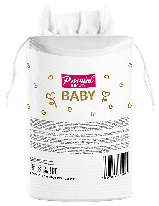 Ватные диски Premial детские, овальные, 40 шт
