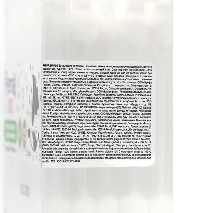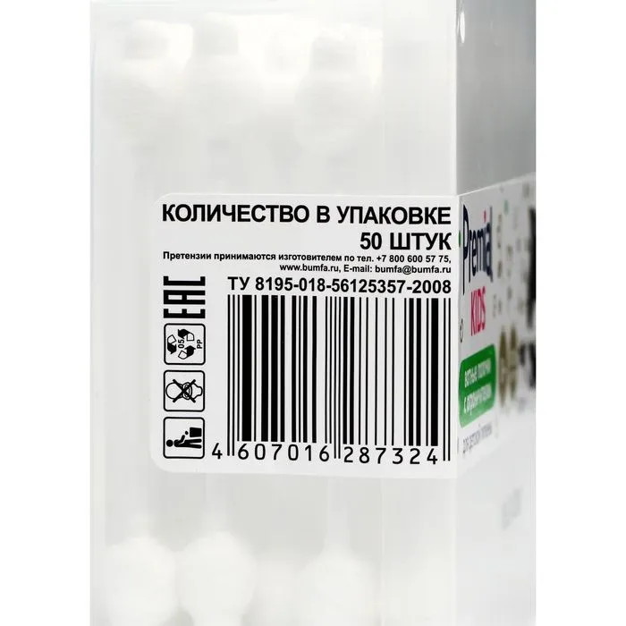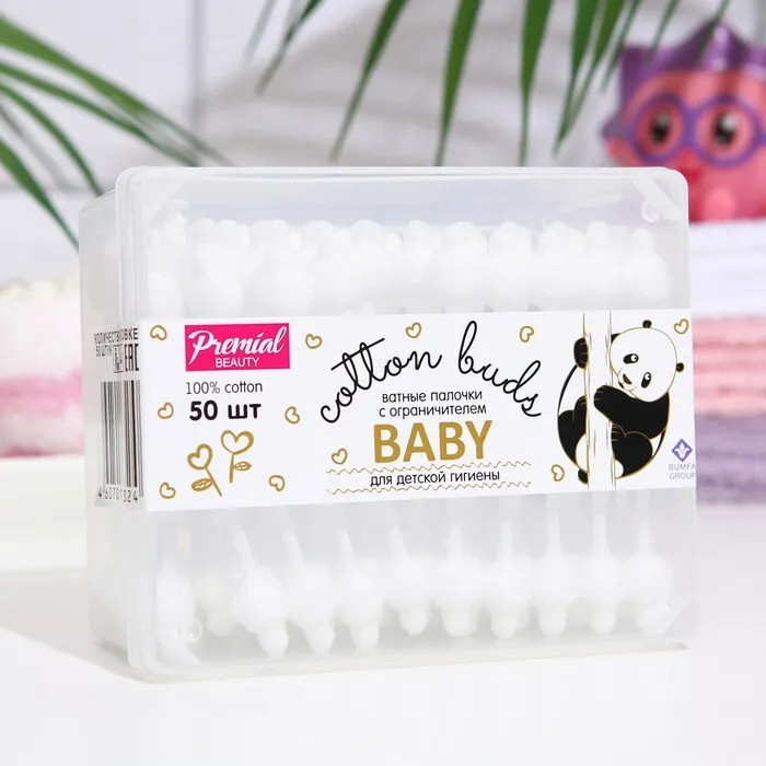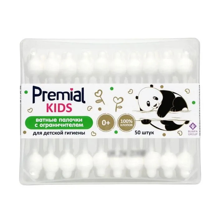 Ватные палочки Premial для детской гигиены с ограничителем, 50 шт