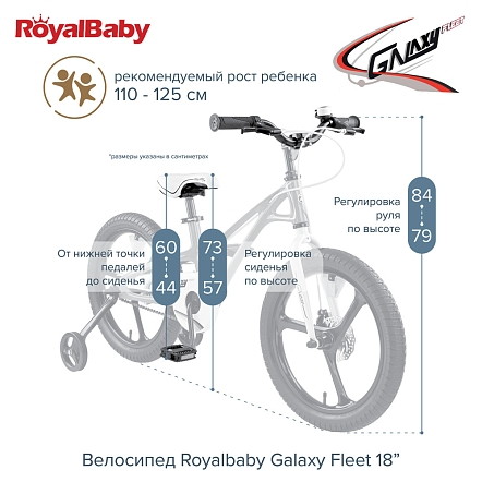 Велосипед двухколесный Royal Baby Galaxy Fleet 18" - детский велосипед порадует Вас своими функциональными особенностями, качественной сборкой, стильным дизайном и отличной ценой. Кататься на таком велосипеде комфортно и очень увлекательно. Galaxy Fleet обладает отличной маневренностью и практически бесшумной ездой по асфальту. Способен преодолеть высокую траву, песок и гравий. Просто незаменим при катании по городским улицам, парковым зонам и пересеченной местности. Galaxy Fleet станет самым запоминающимся подарком для Вашего ребенка.