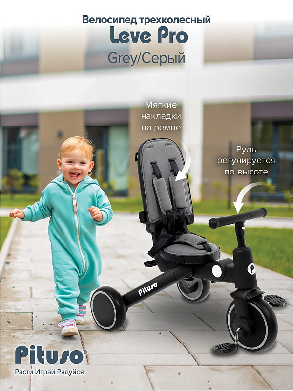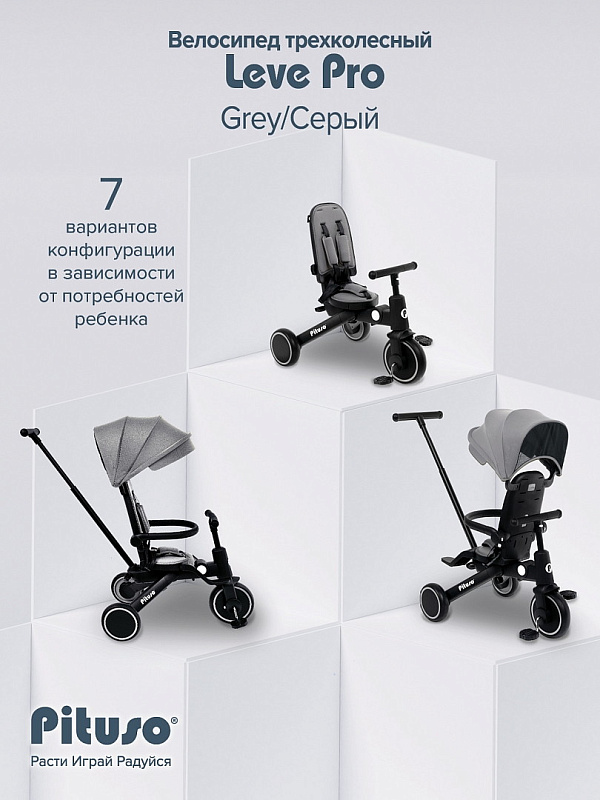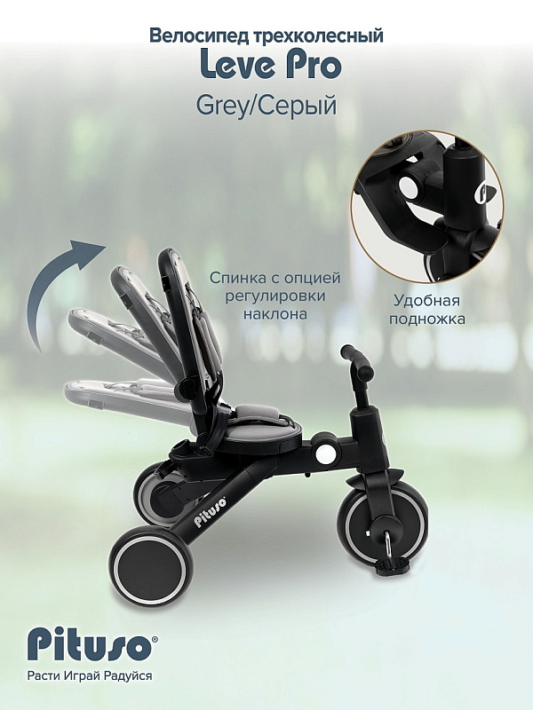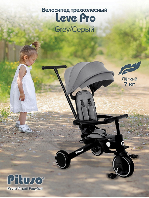 Велосипед трехколесный Pituso Leve Pro Grey/Серый