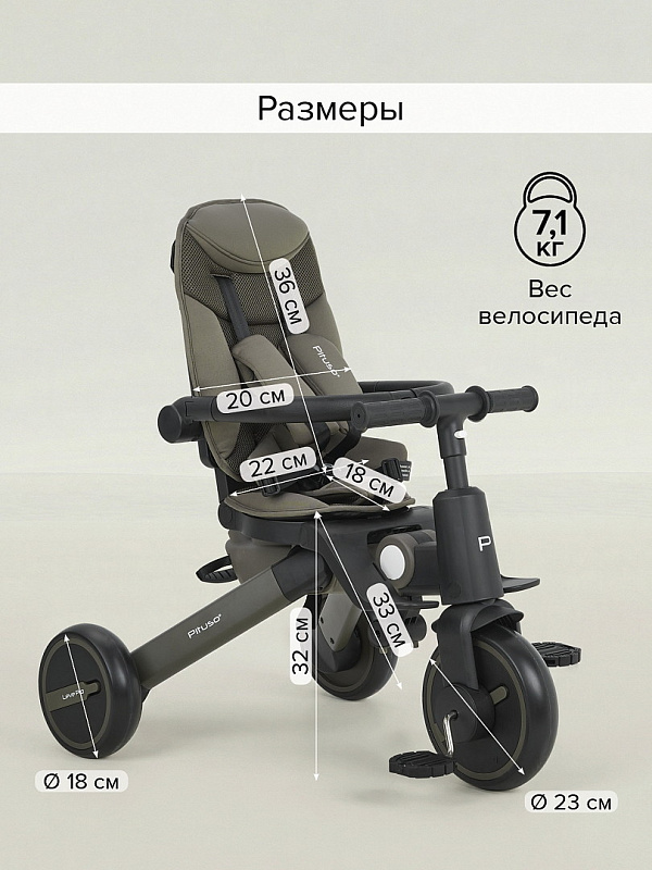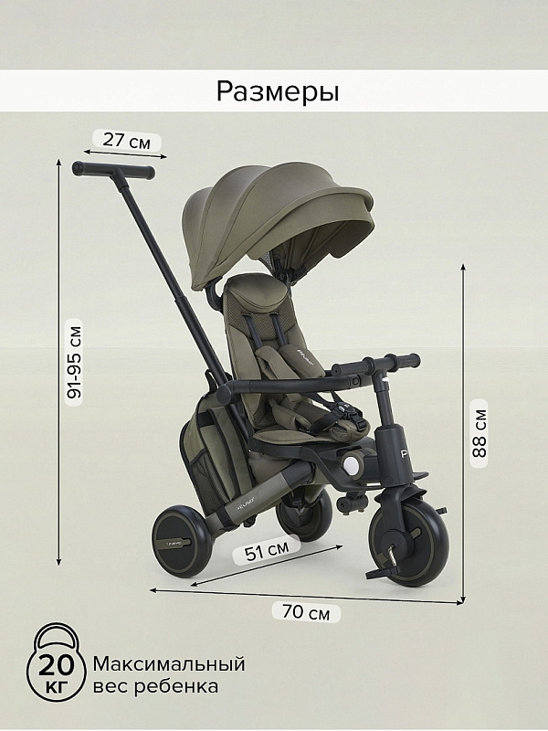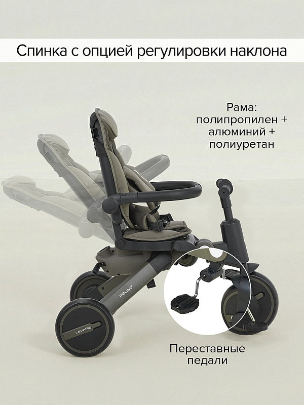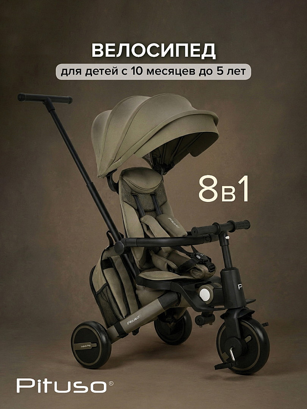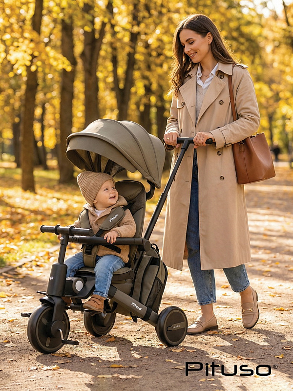 Велосипед трехколесный Pituso Leve Pro складной, с сумкой 2026 Khaki/Хакки(серая рама)Нет оценокХарактеристики