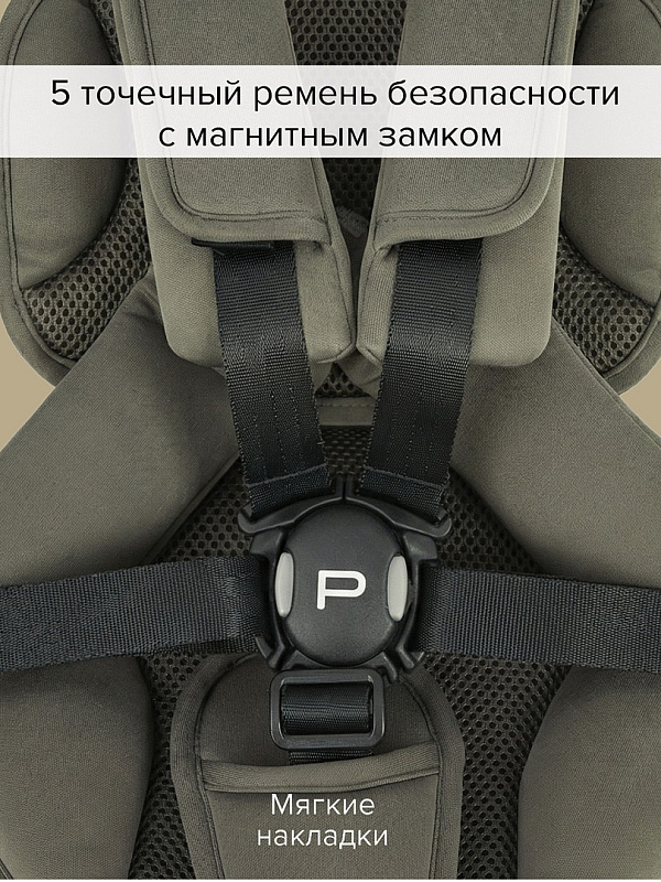 Магнитный замок: Упрощает посадку и фиксацию ребенка, заменяет классические пряжки на поясе.