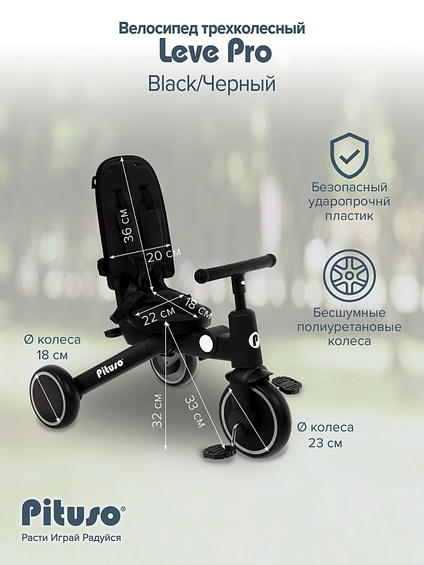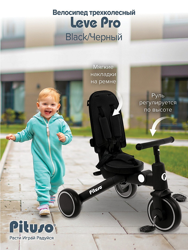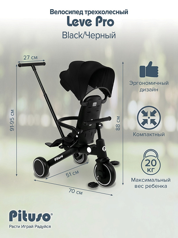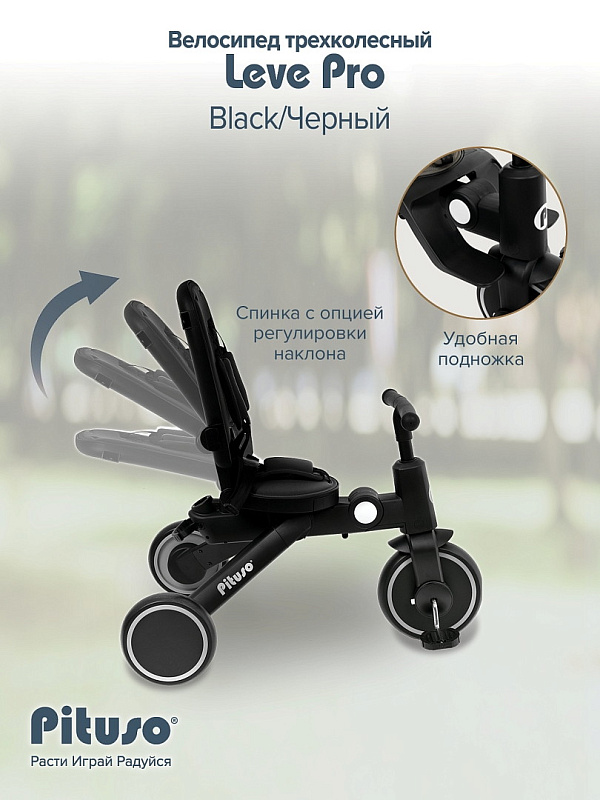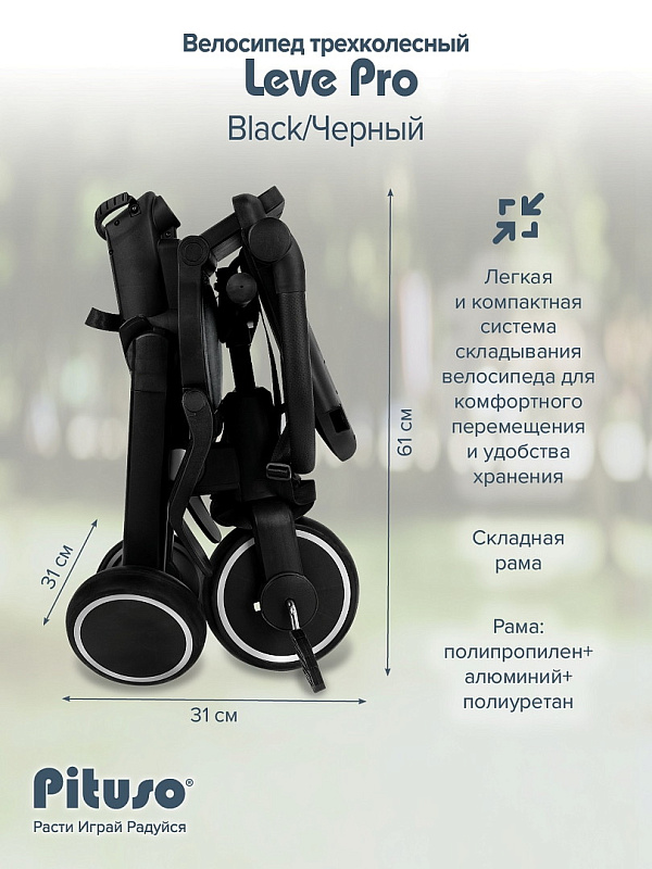 Велосипед трехколесный Pituso Leve Pro складной, с сумкой Black/Черный