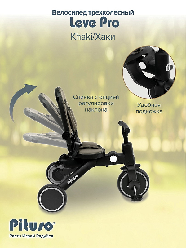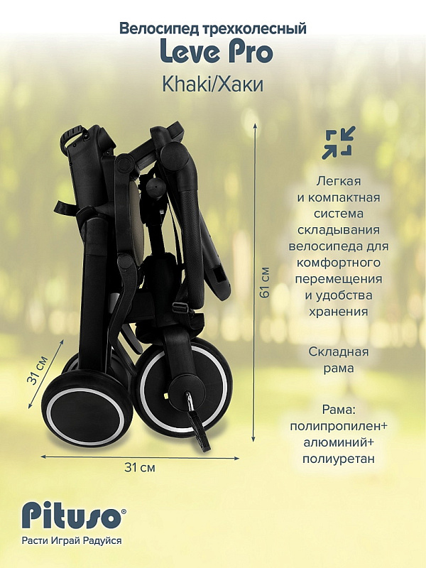 Велосипед трехколесный Pituso Leve Pro складной, с сумкой Khaki/Хаки