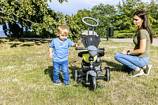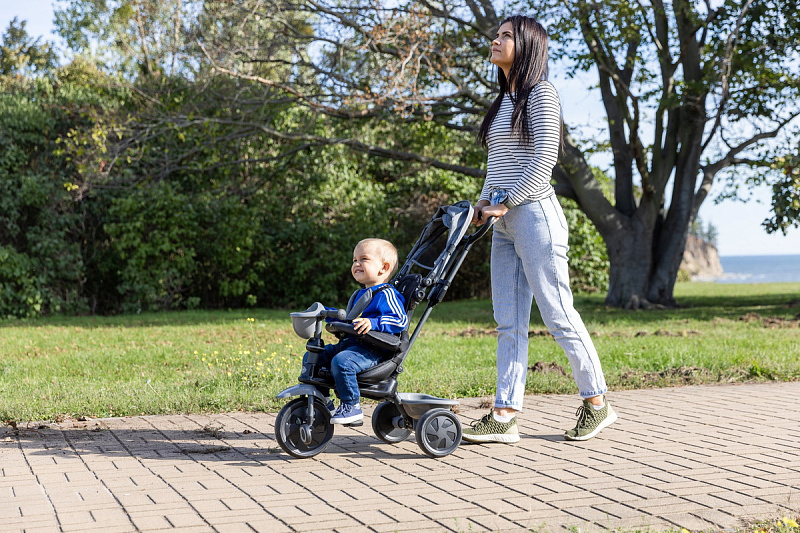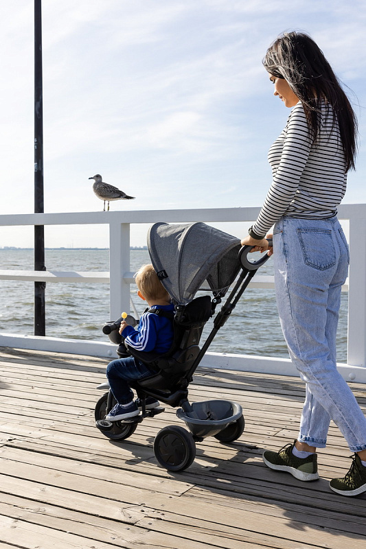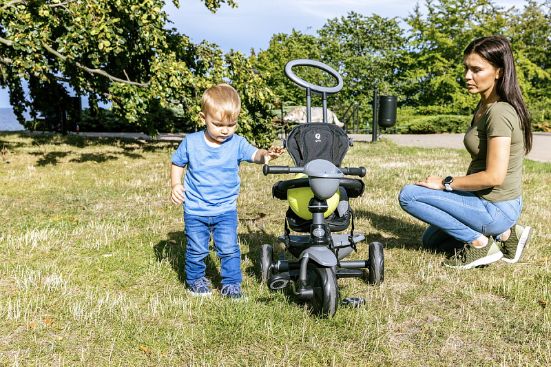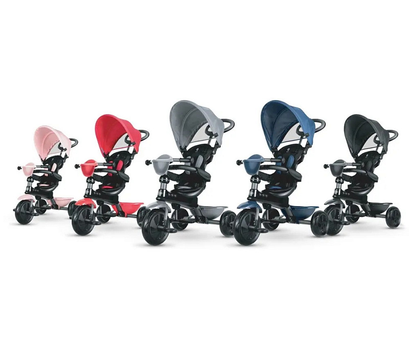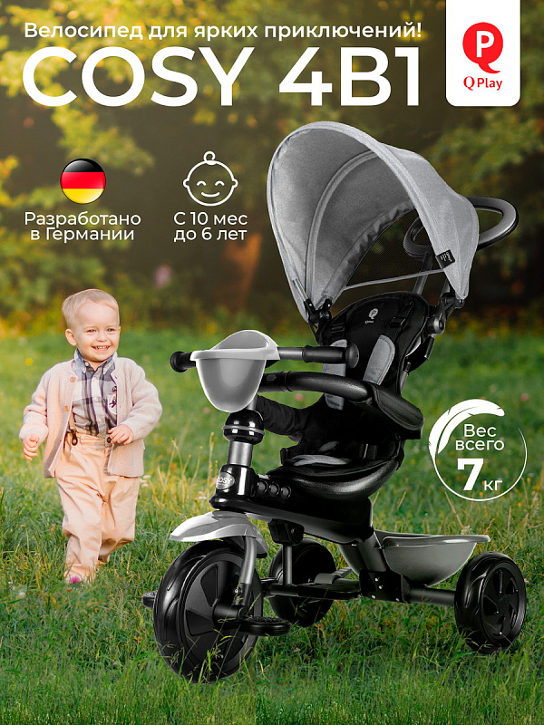 QPlay Cozy – это велосипед коляска трансформер , которая сочетает в себе удобство коляски и функциональные возможности детского трехколесного велосипеда. Адаптация для малышей от 10 месяцев и растет вместе с ребенком, превращаясь из детского велосипеда с ручкой в полноценный трехколесный детский велосипед.