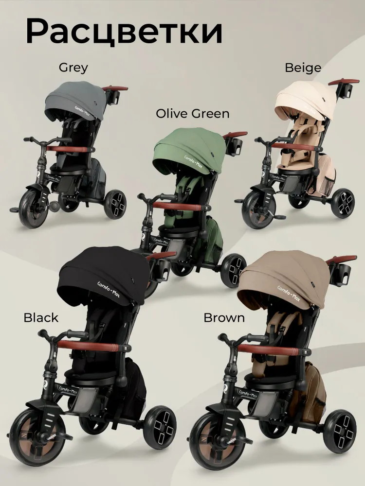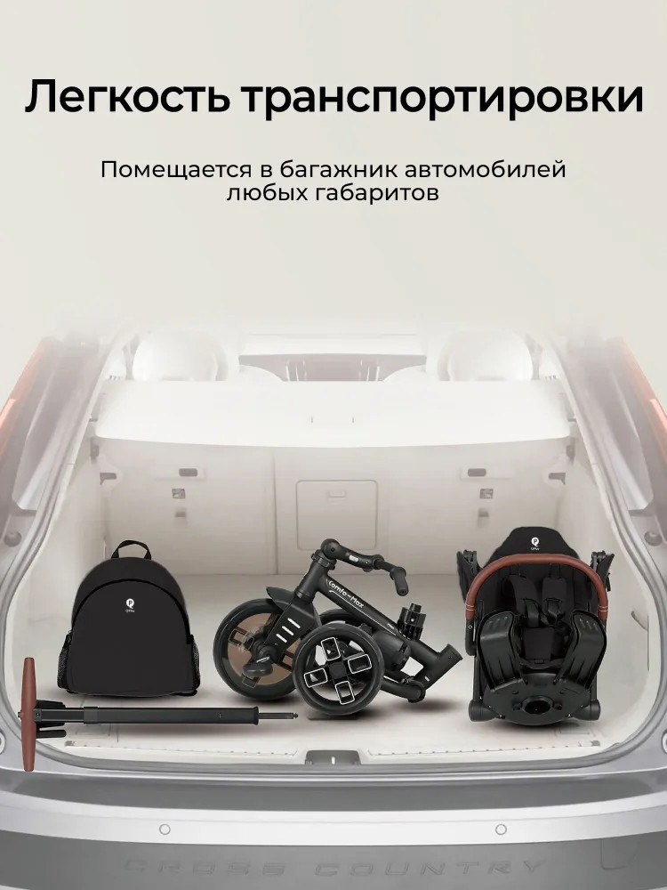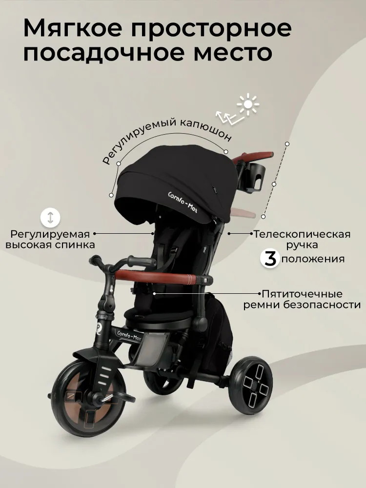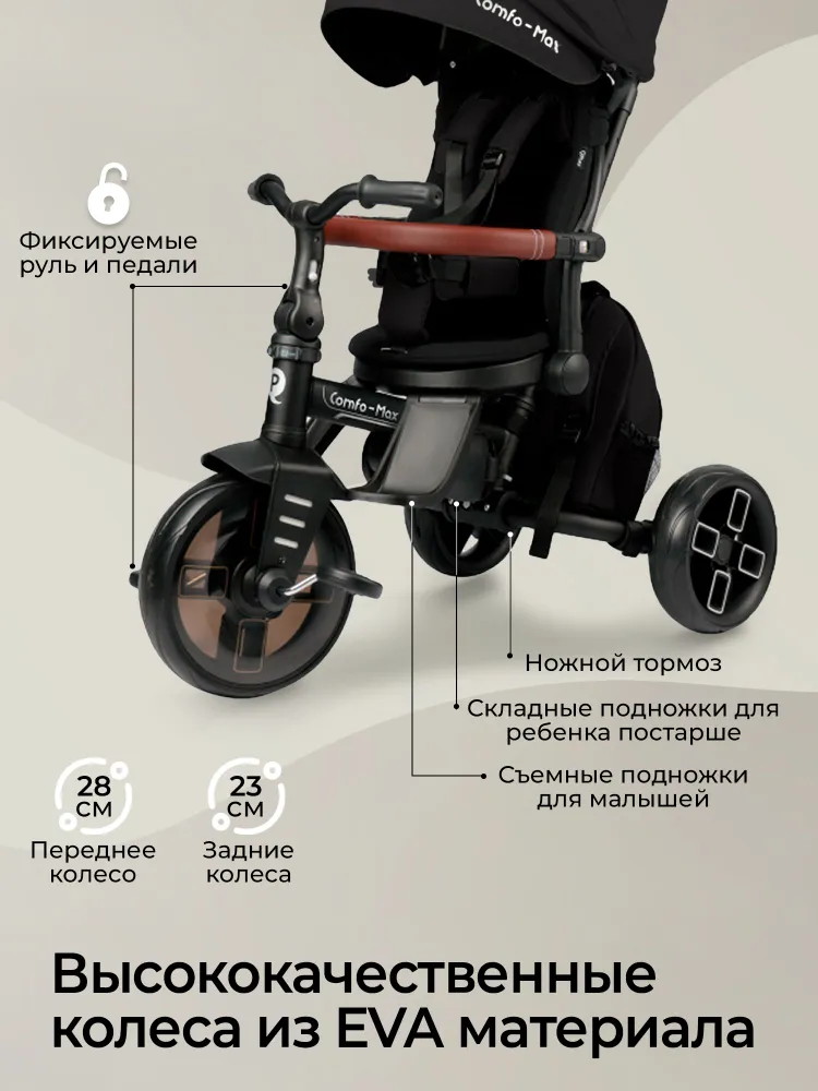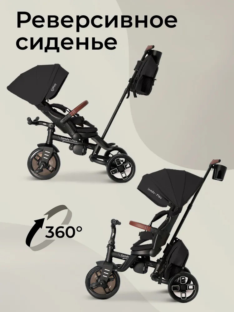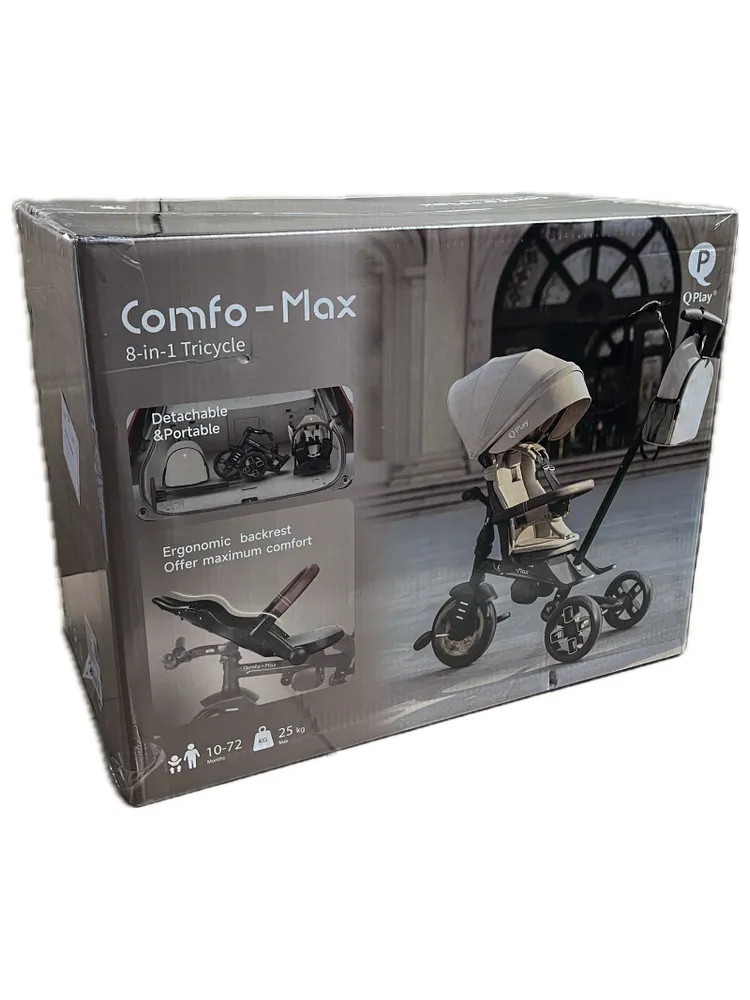 Трехколесный велосипед Qplay Comfo Max — детский велосипед - коляска для ребенка от 10 месяцев до 6 лет. 8 вариаций трансформаций позволит адаптировать велосипед под потребности возраст вашего малыша. Этот детский транспорт идеально подходит для прогулок по городу и паркам, сочетая в себе функциональность, безопасность и комфорт для детей.