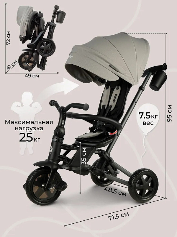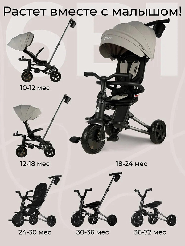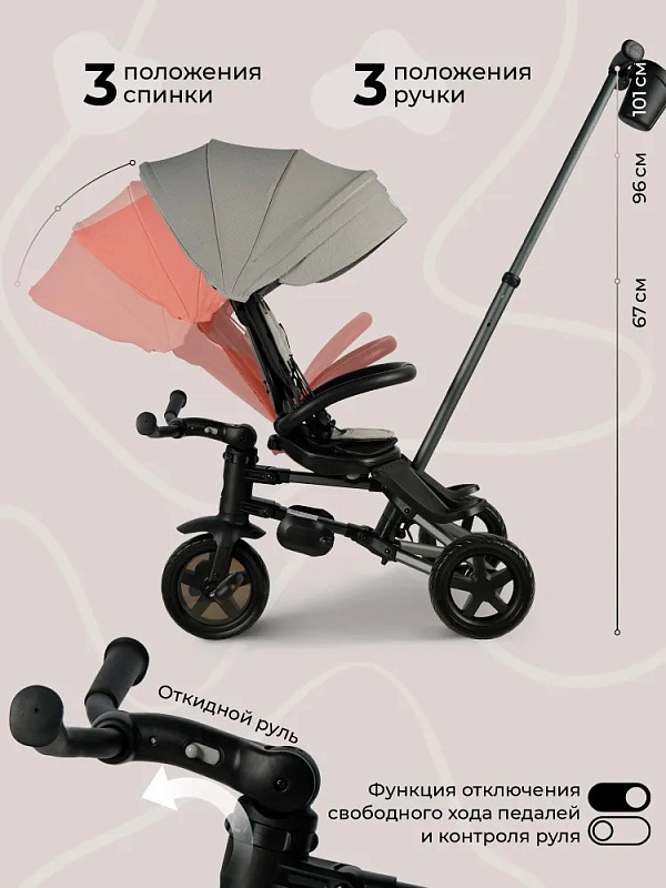 Трансформация: имеет 6 вариантов использования, адаптируясь к растущему ребенку, от фактической коляски до полноценного велосипеда, обеспечивая комфорт, безопасность и радость от прогулок на протяжении нескольких лет.;