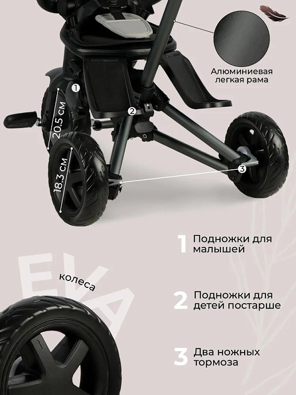 Износостойкие колеса: Колеса из EVA-пены не требуют накачивания и замены, обеспечивая легкий ход и маневренность.