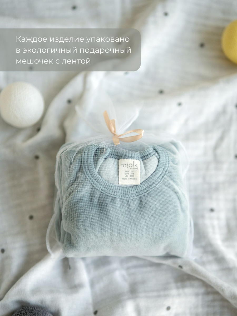 Комбинезон для детей изготовлен в Санкт-Петербурге вручную, он подойдёт для носки круглый год в качестве одежды для новорождённых, мягкой пижамки, дышащей поддевы или самостоятельной одежды. Бережно упакованный в фатиновый мешочек, комбинезон Mjolk станет полезным подарком родным и близким!