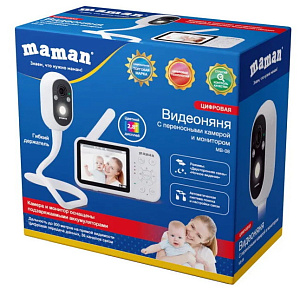 Среди множества одинаковых видеонянь предлагаем по-настоящему уникальное решение для безопасности ребенка: беспроводная видеоняня Maman MB-08 с аккумулятором в камере и мониторе. Она абсолютно автономна и предназначена для наблюдения за малышом на расстоянии до 300 метров, без wi fi и электричества. Можно поставить коляску в саду на даче, или на балконе. Аккумулятор емкостью 4000 мА/ч обеспечивает активную работу камеры до 16-ти часов. Гибкий держатель – шлейф позволит надежно зафиксировать камеру практически на любой выступающей поверхности. Удобный монитор с цветным дисплеем диагональю 2,8 дюйма и 2-кратным увеличением изображения (ZOOM) не занимает много места и поместится даже в карман одежды. А если вы вышли из зоны связи, то монитор оповестить вас световой и звуковой индикацией. Видеоняня проста в установке, интуитивно понятна в использовании и для ее настройки и функционирования не требуется интернет. Оснащена функцией двусторонней связи – возможность дистанционно общаться с ребенком. С родительского блока можно включать загруженные колыбельные и звуки природы (8 мелодий), управлять чувствительностью микрофона, громкостью и яркостью экрана. Видеоняня может работать в двух режимах: стандартный режим, при котором камера на постоянной основе передает изображение на родительский блок (монитор) и режим энергосбережения, при котором камера работает в фоновом режиме и не передает картинку на монитор во время сна ребенка, но мгновенно включается и начинает трансляцию изображения при малейшем шуме. Также стоит отметить еще одну важную функцию - режим ночного видения, которая обеспечивает наблюдение за ребенком в темноте при помощи инфракрасного датчика. В комплект поставки входит камера (детский блок), монитор (родительский блок), адаптеры питания 2 шт., кабели питания USB Type-C 2 шт., гибкий держатель для камеры, руководство пользователя. Видеоняня может стать также незаменимым помощником в наблюдении за пожилыми людьми, инвалидами или людьми, которым по какой-то причине требуется постоянный контроль и уход, а благодаря стильной упаковке и интуитивно понятному интерфейсу видеоняня станет замечательным подарком родителям на рождение малыша! Видеоняня Maman MB-08 поможет современным родителям обеспечить комфорт и безопасность малыша. С Maman MB-08 вы получите уверенность и спокойствие, зная, что ваш ребенок под надежным присмотром.