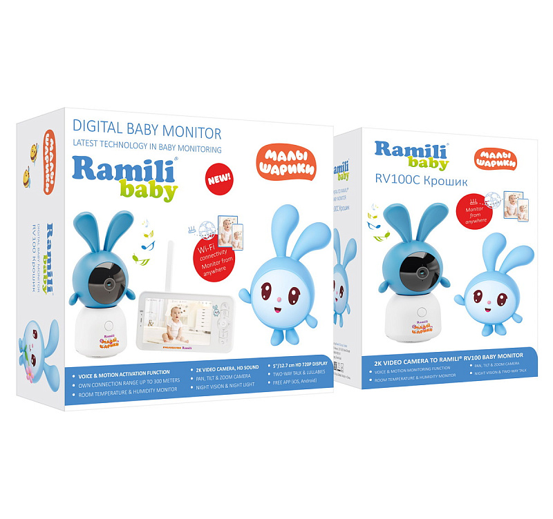 Дизайн этой видеоняни Ramili Baby RV100X2KROSH выполнен по мотивам серии популярных мультфильмов для самых маленьких зрителей – Малышарики. Уникальный и забавный дизайн камеры порадует малыша и отлично впишется в интерьер любой детской комнаты.