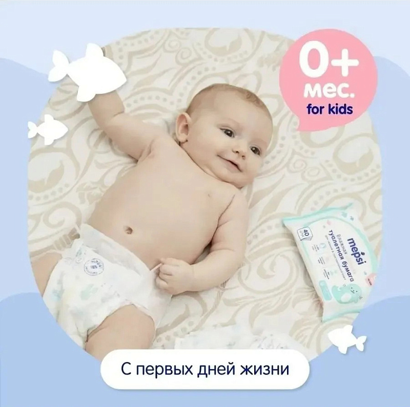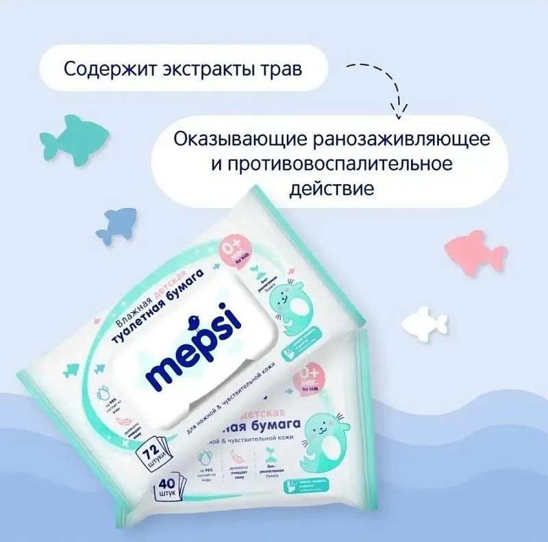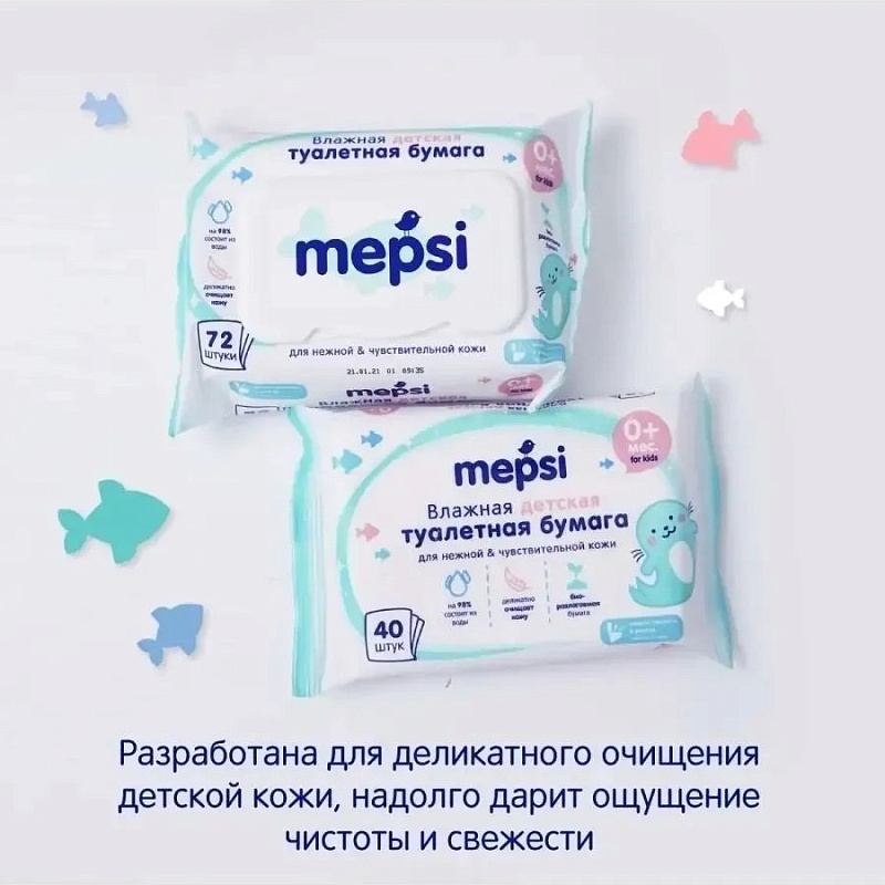 Влажная туалетная бумага Mepsi для детей, 72 шт