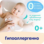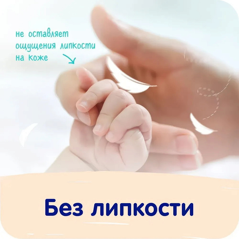 Нетканое полотно, лосьон пропитывающий, Содержат D-Pantenol, Содержат Витамин Е, Не содержат спирта, Без запаха, Без липкого эффекта, Содержат 99% воды, Гипоаллергенные, Рельефная поверхность салфеток 0+