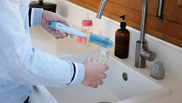 - Съемная насадка с силиконовыми щетинками поможет помыть соски и пустышки
