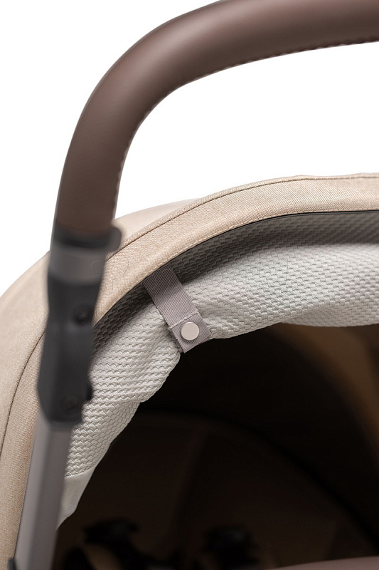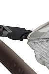 - С одной стороны крепится к капюшону, с другой одевается на ручку коляски или на раму.