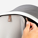 - Можно свернуть и закрепить шторкой на капюшоне (если не используется)