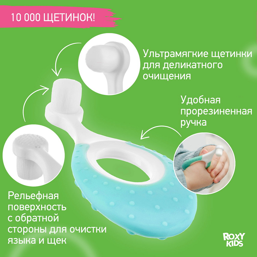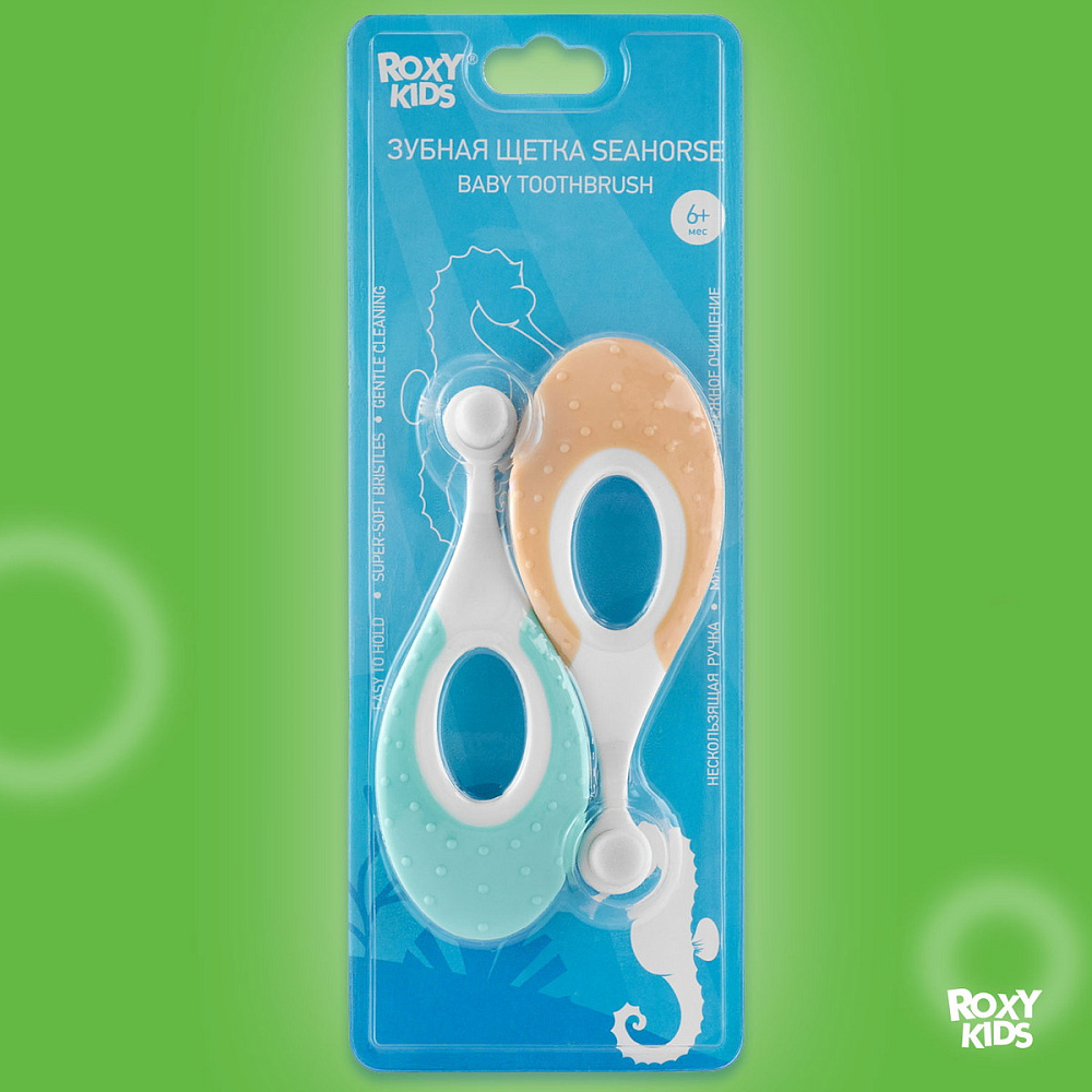 Зубные щетки SEAHORSE от ROXY-KIDS с ультрамягкой щетиной предназначены для комфортного и безопасного ухода за первыми зубками и полостью рта малыша. Зубная щетка оснащена небольшой головкой и мягкой щетиной, которая бережно удаляет налет с детских зубов, а также аккуратно массирует десны. Поверхность ручки имеет рельефные элементы, поэтому щетка не будет скользить в детской руке. Прорезиненную часть можно безопасно грызть и кусать, а заднюю верхнюю часть щетки можно использовать для очищения языка.