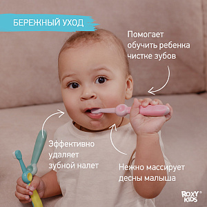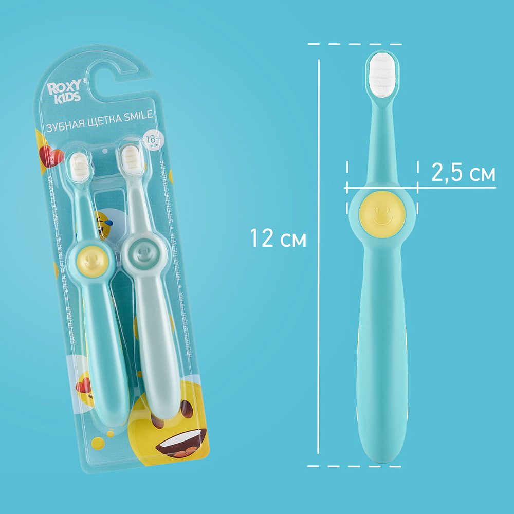 Зубная щетка для детей Roxy-Kids Смайлик ультрамягкая 2 шт RTB-013-BG Бирюзовый+ЗеленыйНет оценокХарактеристики